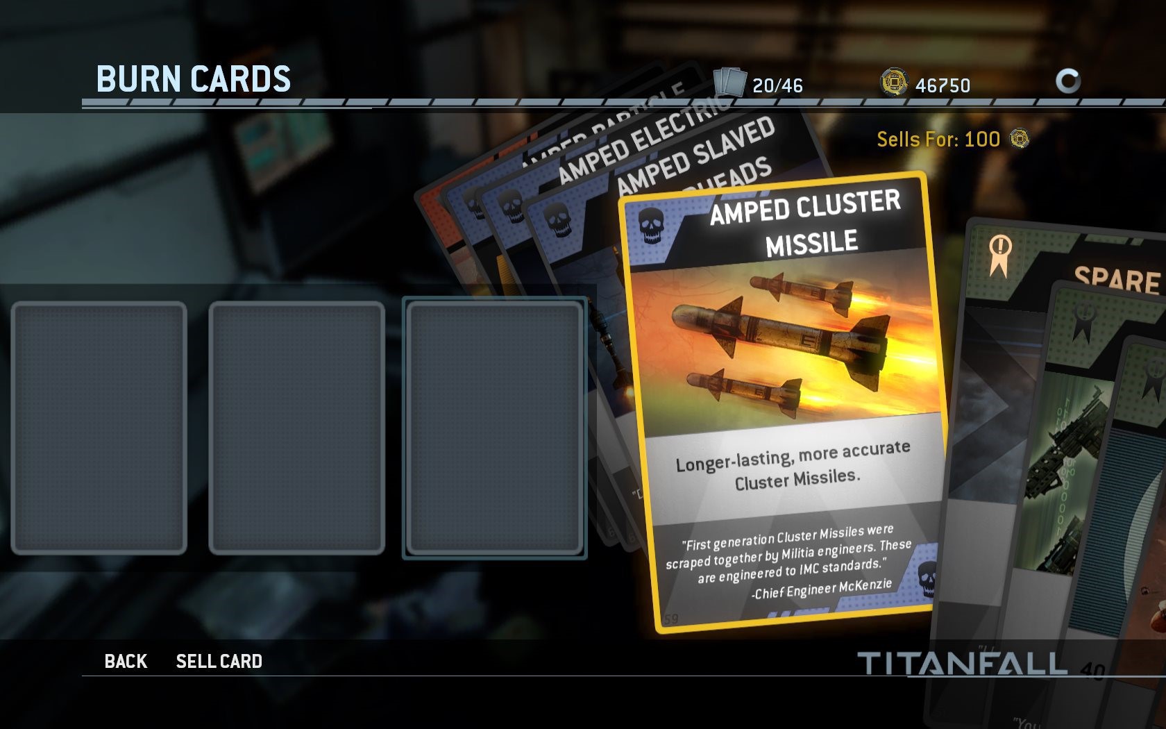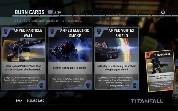 Расходные карты можно получить только играя в Titanfall и повышая уровень своего Пилота, а также проходя испытания. Игроки не смогут обмениваться расходными картами с другими игроками и приобретать их посредством механизма микротранзакций.