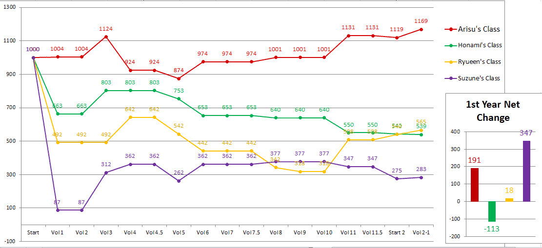 @Sticks, я данные Аяно не обновлял. Там были его данные, но на японском. Поэтому я решил подождать выход тома.@Sticks@Alexander Volg, я так понял у вас там все шикарно в плане спойлеров?Я просто сижу пока на дне.@Alexander Volg@Sticks, все спойлеры тут собраны если что. А насчёт показателей Аяно.@Sticks@Alexander Volg@Sticks, насчёт экзамена было парочку интересных спойлеров. Будут какие-то карты, обычные и особенные, которые дают разные плюшки. Нагимо вошёл во вкус)@[comment=8795979], хех, нашёл чё отрыть@[comment=8796793], так откуда тогда изначальные результаты взялись, если тот же Коэнджи никак себя не показывал на 1-ом году? От балды что ли взяли?@[comment=8796810], глянь карточку@[comment=8796841], а какой ты от меня аргумент хочешь услышать? Я говорю что есть, этот же коммент@[comment=8796880], всё может быть куда проще, автор сам особо не задумывался над этой темой и расписал всё как в голову взбредёт. Кстати, я не понял, а откуда ты взял общий балл за первые 3 месяца, сам высчитал по пятибалльной системе или использовал@c.Albedo[comment=8796985]@c.Albedo[comment=8796985]@c.Albedo[comment=8797061]@[comment=8797082], не, разница безусловно есть, но такая ли она большая, как ты сказал? Кстати, как бы там ни было, процентная разница в числах у нас получается плюс-минус одинаковая, где-то 20%, если округлить в меньшую сторону. Пускай не погрешность, хотя если сравнивать с Сотомурой, то там уже куда меньше выходит.@[comment=8797110], так я тебе говорю, что соотношение между числами практически одинаковое, сам посчитай, я не спорю с твоими подсчётами.@[comment=8797120], да ладно, забей) Пускай будет существенная, как двоечник с троичником.@c.Albedo[comment=8797061]@[comment=8797285], читай), я просто не стал мультипостить.@[comment=8797301], не знаю, чтобы правда не всплыла? Мало ли какие учителя бывают, но звучит это как-то слабо. Тут ещё вопрос, когда конкретно её карточка вышла в свет. Эти досье выходили в течение первого года, то есть если она вышла прям на первых томах, то как вариант - автор банально переделал сюжет, вот если ближе к 4-му тому или уже после, то подобный вариант не канает.@c.Albedo[comment=8797325]Вспомнил, что у меня есть 5 томов официальных на англ., и там эти карточки попадаются, начиная со 2-го тома. Кей появилась в 3-ем