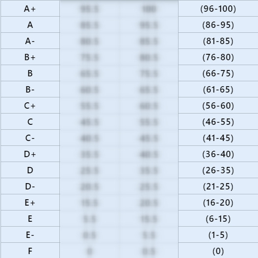 *Формула расчёта общей оценки: (академические способности + физические способности + социальное взаимодействие + внесённый вклад × 0.5) / 350 × 100 (округление происходит в большую сторону)