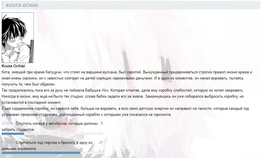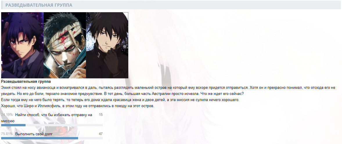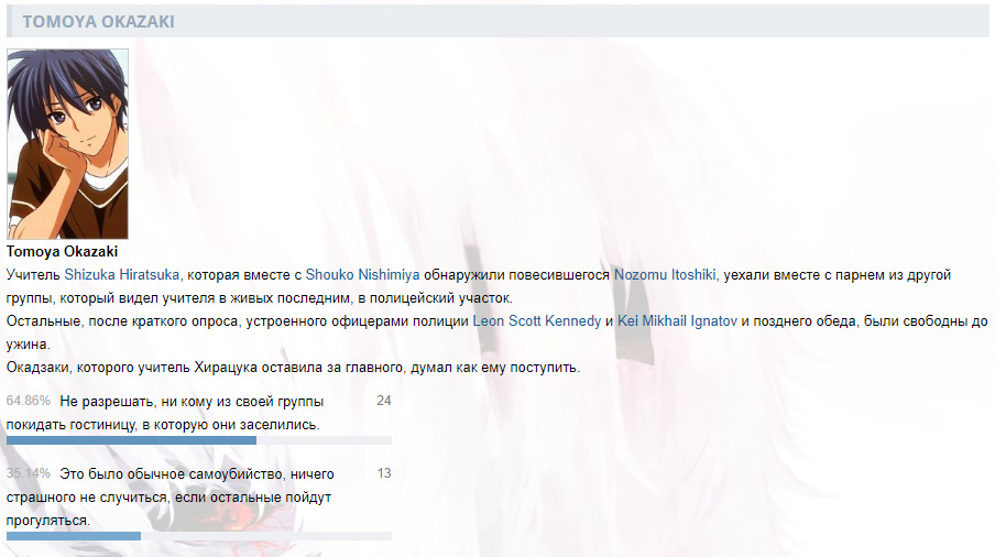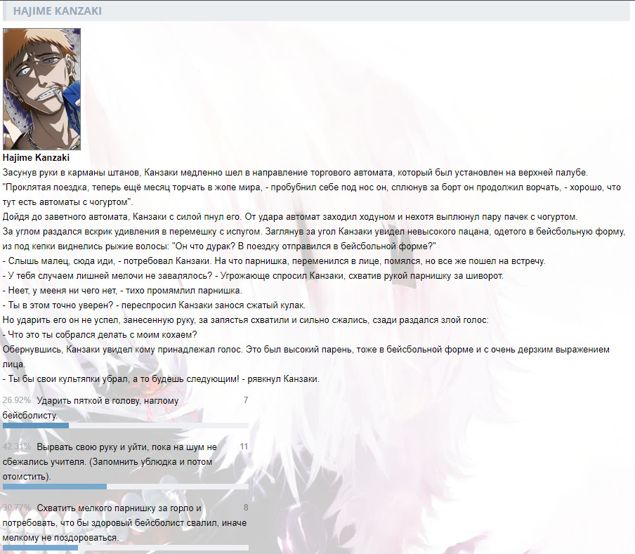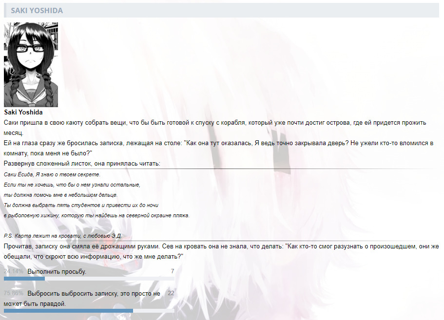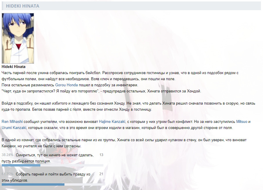 DaHankвИнтерактивы от DaHanka1623 февраля 2020Ранее в сюжете@Пролог (1)@Пролог (2)@День первый (1)@День первый (2)@День первый (3)@День первый (4)@День первый (5)@День первый (6)@День первый (7)@День первый (8)@Сон@Рассвет@Окрестности храмаКомментарииDaHank23 февраля 2020#Пролог. (1)DaHank23 февраля 2020#Пролог. (2)DaHank23 февраля 2020#День первый. (1)DaHank24 февраля 2020#День первый. (2)DaHank26 февраля 2020#День первый. (3)DaHank27 февраля 2020#День первый. (4)DaHank 8 марта 2020#День первый. (5)DaHank10 марта 2020#День первый. (6)DaHank16 марта 2020#День первый. (7)DaHank24 апреля 2020#День первый. (8)DaHank 7 мая 2020#СонDaHank14 мая 2020#РассветDaHank28 июня 2020#Окрестности храмаTOPSergey14 июля 2021#Ничего себе прикольно.TOPSergey14 июля 2021#А я думал что все что было в коллекции само вышло, а на дело есть целый клуб.@DaHankDaHank14 июля 2021#@TOPSergey, Да он в основном создает только для уведомлений, а так по сути является помойкой и архимов для меня)назадТвой комментарийссылкаанимемангаранобэперсонажчеловекOKВставка изображения:OKЦитирование пользователя:OK* Текст