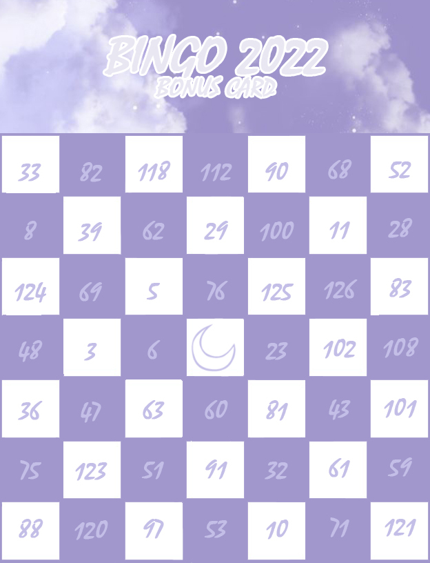 В этом бинго баллы будут считаться по строчкам, каждая закрытая - 7 баллов. Полностью закрытое бинго дает дополнительные 49 баллов. Бонусное бинго работает по тем же правилам, но взять вы его можете только после того, как собрали минимум 5 линий в обычной табличке. За написание отзыва вы получаете 1 дополнительный балл.