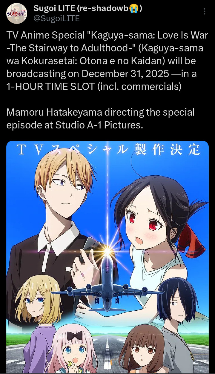 20. "Судьба/Странная подделка" 21. "Моя геройская академия: Вне закона 2" 22. "Триган: Наблюдая за звёздами" 23. "Медалистка 2" 24. "Время пыток, принцесса! 2" 25. "Адский учитель Нубэ (2025). Часть 2" 26. "Золотое божество: Финал" 27. "Ты и я — полные противоположности" 28. "Принц соседней страны обожает злодейку" 29. "Прекрасная вечерняя луна" 30. "Тёмная луна: Кровавый алтарь" 31. "Учитель-мизантроп в классе нелюдей" 32. "Дочь короля демонов слишком добрая!" 33. "Дело Арне" 34. "Для тебя во всём цвету"