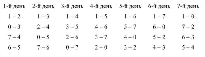 (победа - 2, ничья - 1, поражение - 0)