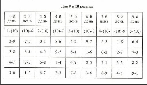 (победа - 2, ничья - 1, поражение - 0)