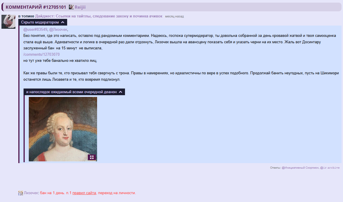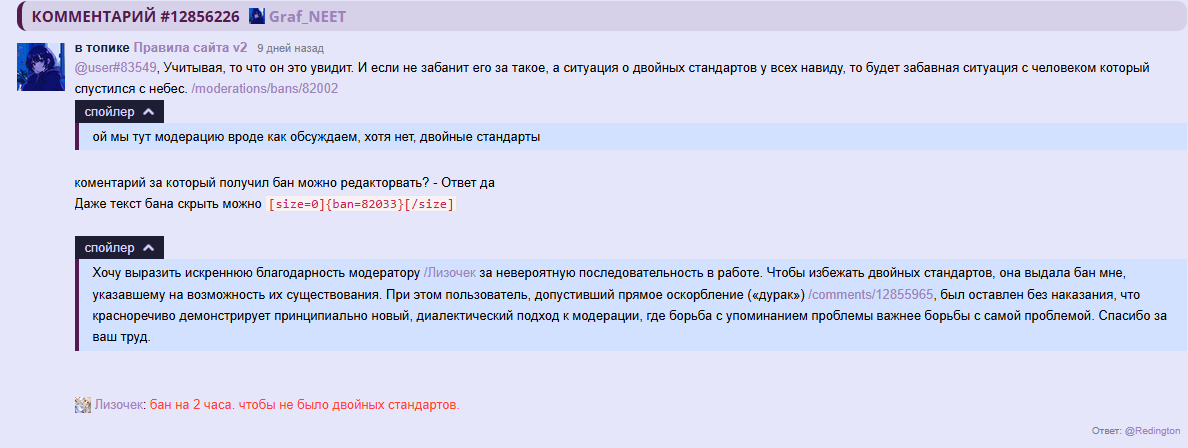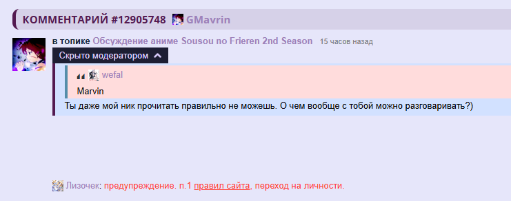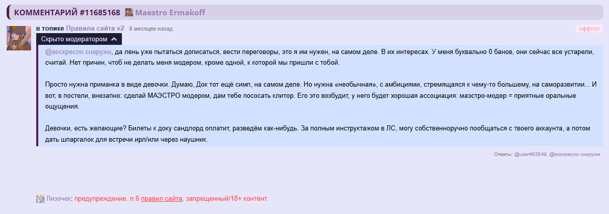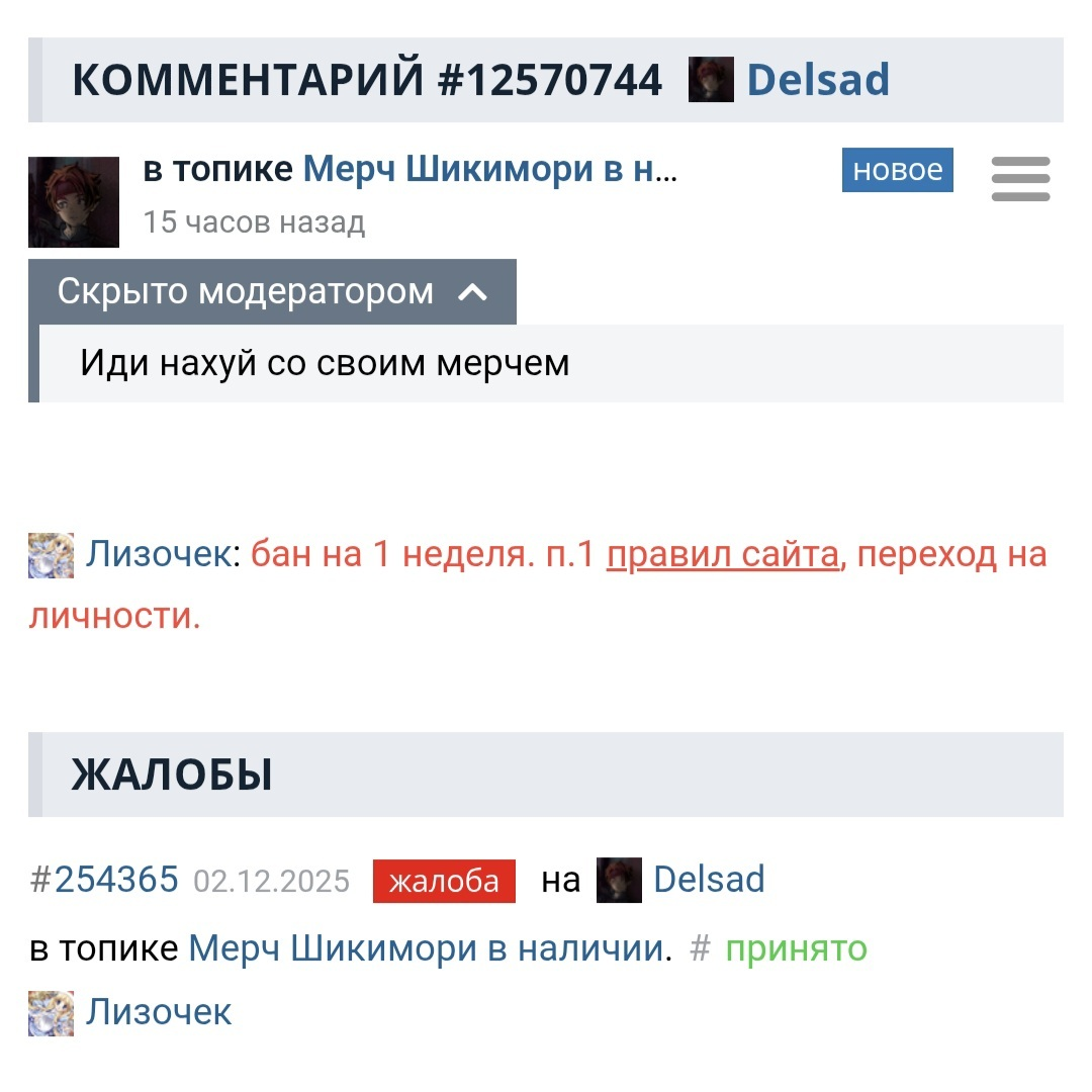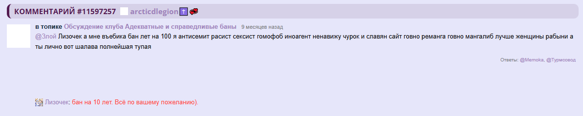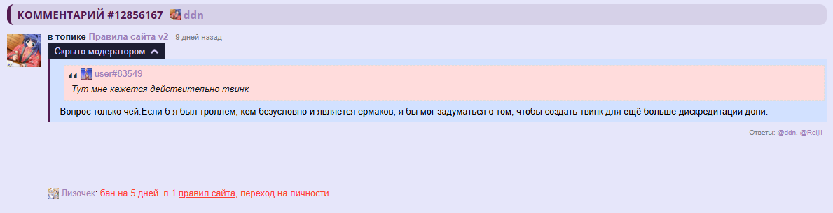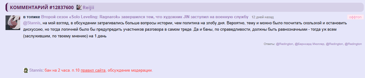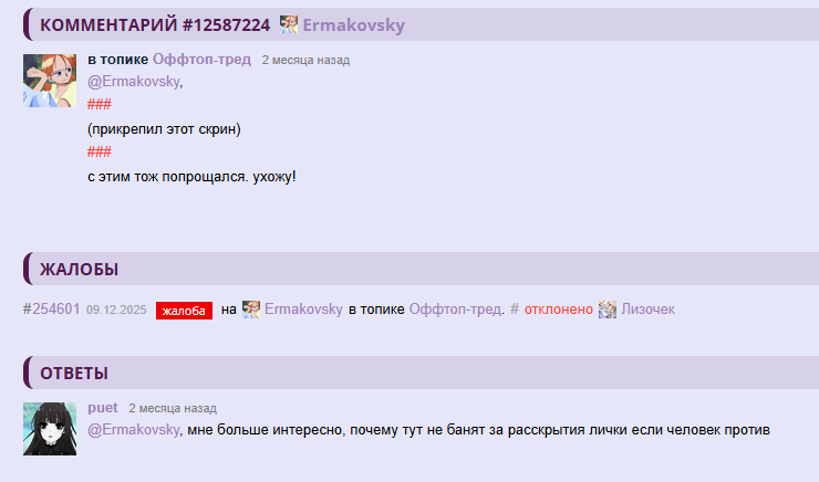 /comments/12330060 "зачем обостряете" в группе, без жалобы.