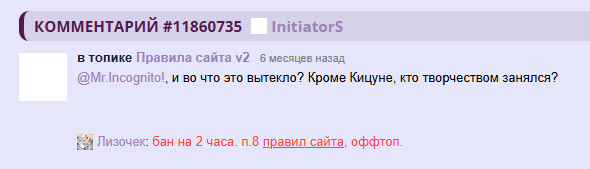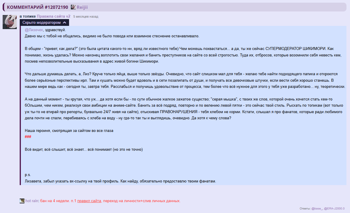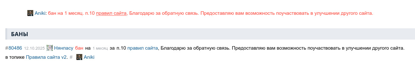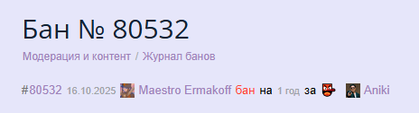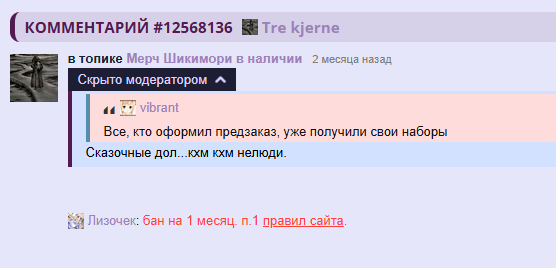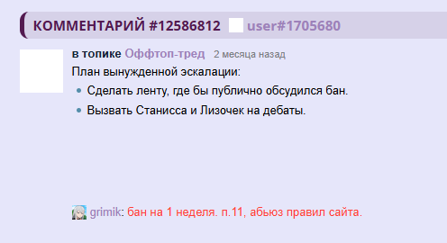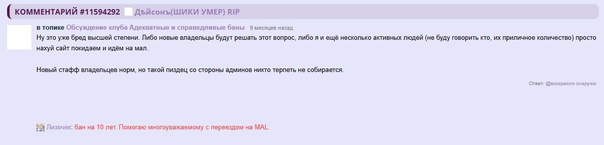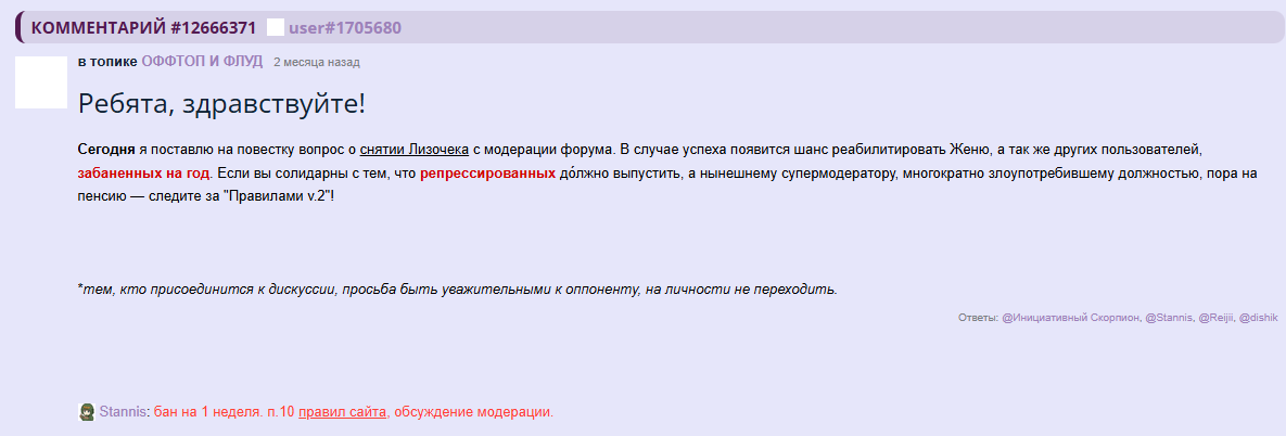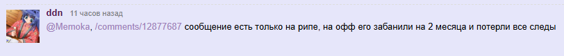 @Memoka, /comments/12877687 сообщение есть только на рипе, на офф его забанили на 2 месяца и потерли все следы