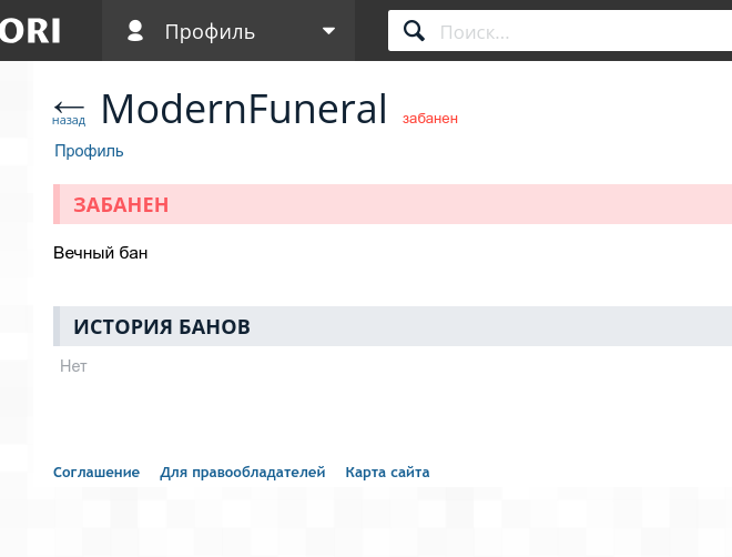 Сайт-клон был забанен после введения своего плеера спустя ОДИН ДЕНЬ XD