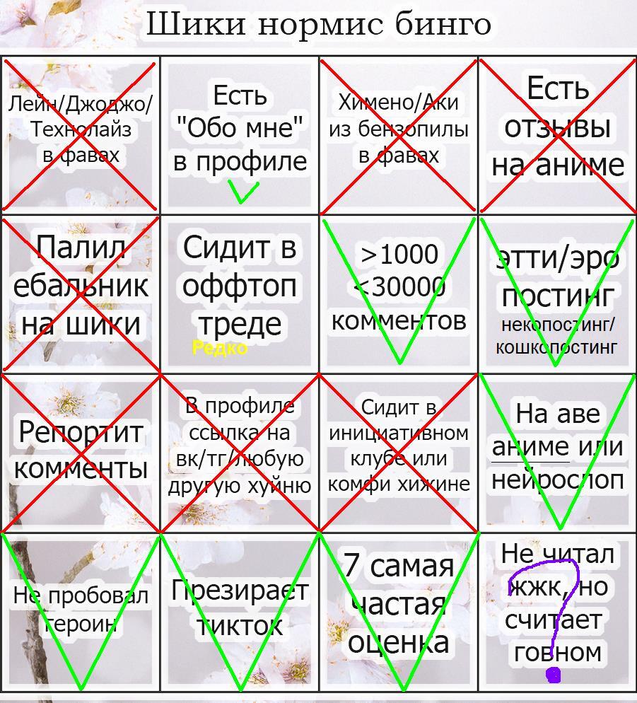 В топике насрали, поэтому придётся список определённых в нормисы вынести отдельно: 1. @osmy2026 – Максимально скучный с примитивными взглядами и интересами НОРМИС. Из самых базовых слоёв нормисов – не выкупил Человека Слона Дэвида Линча 2. @Becoming Of Being – Слушает vsrap подкасты 3. @puet – постит нейрослоп с большими сисяндрами (определён @рДсегугзабцs) 4. @cseislvt