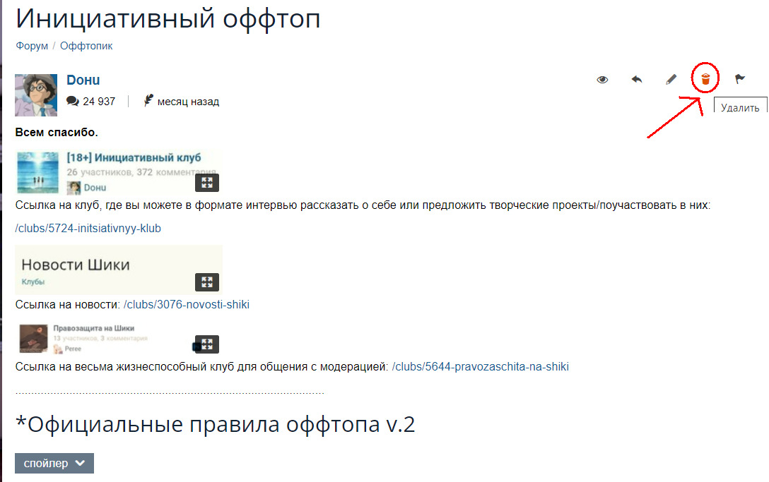 @InitiatorS, Поздно заметил, но отвечу за супермодератора. Нет, ему достаточно просто нажать "Удалить" см скриншот ниже в спойлере. В Клубах это так же работает есть у тебя там роль "Администратора"