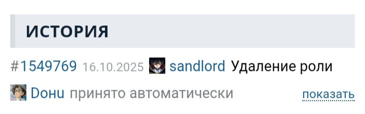 @Лизочек@Lena(2x2), отлично расписал. Спасибо@InitiatorS@Лизочек, надеюсь, посмотрев видео Ермакова, вам стал ясен шутливый характер его жалоб, отчего надеюсь, что если вы и будете принимать участие в конфликтах пользователей в ЛС(!), то узнаете мнение всех задействованных сторон. Прошу разбранить аккаунт Журналиста, который был забанен по непонятной причине, ведь шутливую надпись на аватарке его можно расценить было разве что как троллинг, который на сайте разрешён. Также прошу разбанить аккаунт@Doнu, которому необоснованно дали 10 лет, поскольку обхда бана не было, ибо само по себе наличие твинка не расценивается, как нарушение правил.@Лизочек@InitiatorS, она же писала, похуй кто репортит, похуй зачем репортит. Репорт есть, бан притянуть можно, значит надо его аппрувить@InitiatorS, держите Жарналиста@InitiatorS@Лизочек, разабньте также аккаунт@Doнu (на момент бана с него ни одного сообщения писано не было).@Лизочек@InitiatorS, не многовато ли твинков?@InitiatorS@Лизочек, я хочу этот аккаунт сделать деловым, а личную активность вести с другого аккаунта.@Лизочек@InitiatorS, тогда придётся немного подождать@InitiatorS@Лизочек, хорошо. 👍@Лизочек@InitiatorS,@InitiatorS@Лизочек, спасибо.