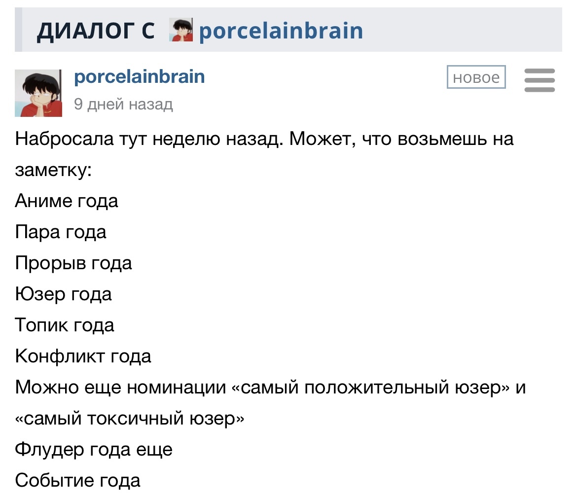 Друзья, я был занят, поэтому 2 части «Шики премии» не случилось, к сожалению, соррян за факап, если честно, то у меня нет «новогоднего настроения», интереса к шикимори всё меньше, прогнозы не оптимистичны (имхо), но сейчас не о моём нытье. Спасибо за ваши предложения/отклик: Интерес к подобного рода мероприятию виден, значит, интенция положительная, возможно, в 2026 всё будет сделано по красоте (мной или не мной — неважно!), кто-то возьмётся за реализацию, прекрасно всё оформит, с большим охватом всё сделает (я никак не рекламил премию). У меня были планы, но, блин, ЛЕНЬ, СВОИ ЗАБОТЫ… я лох, простите (((