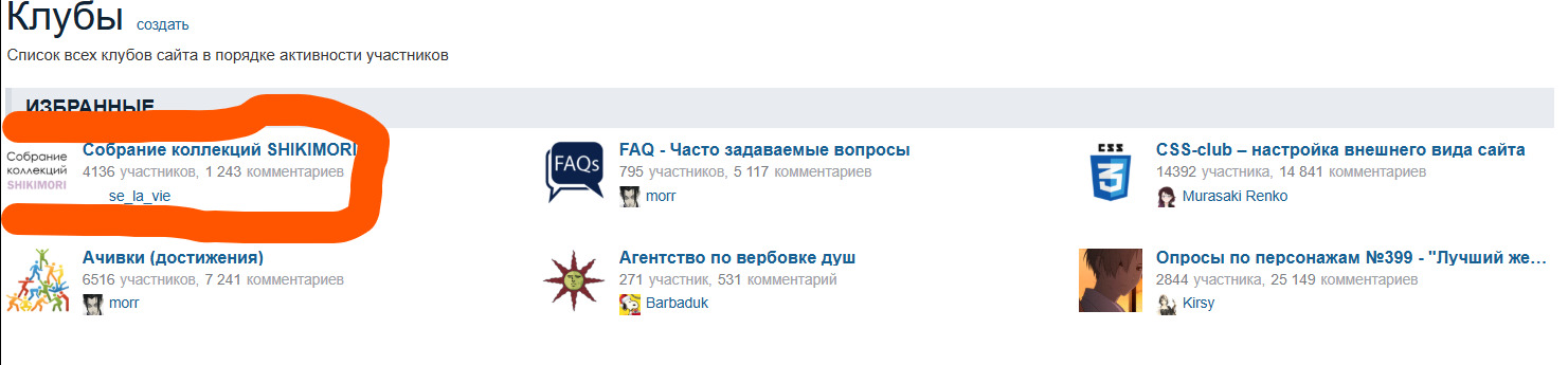 Раньше это было очень популярное и активное местечко. Благодарю павших героев за это, а именно: 1. @se_la_vie (Milena Mare) (создатель) 2. /Chiru(админ) 3. @CounterForce (регулярно пополнял базу. клуб остановил деятельность после его ухода с сайта, все следы пребывания данного юзера стёрты. ОГРОМНОЕ СПАСИБО! ТЫ НЕ ЗАБЫТ!)
