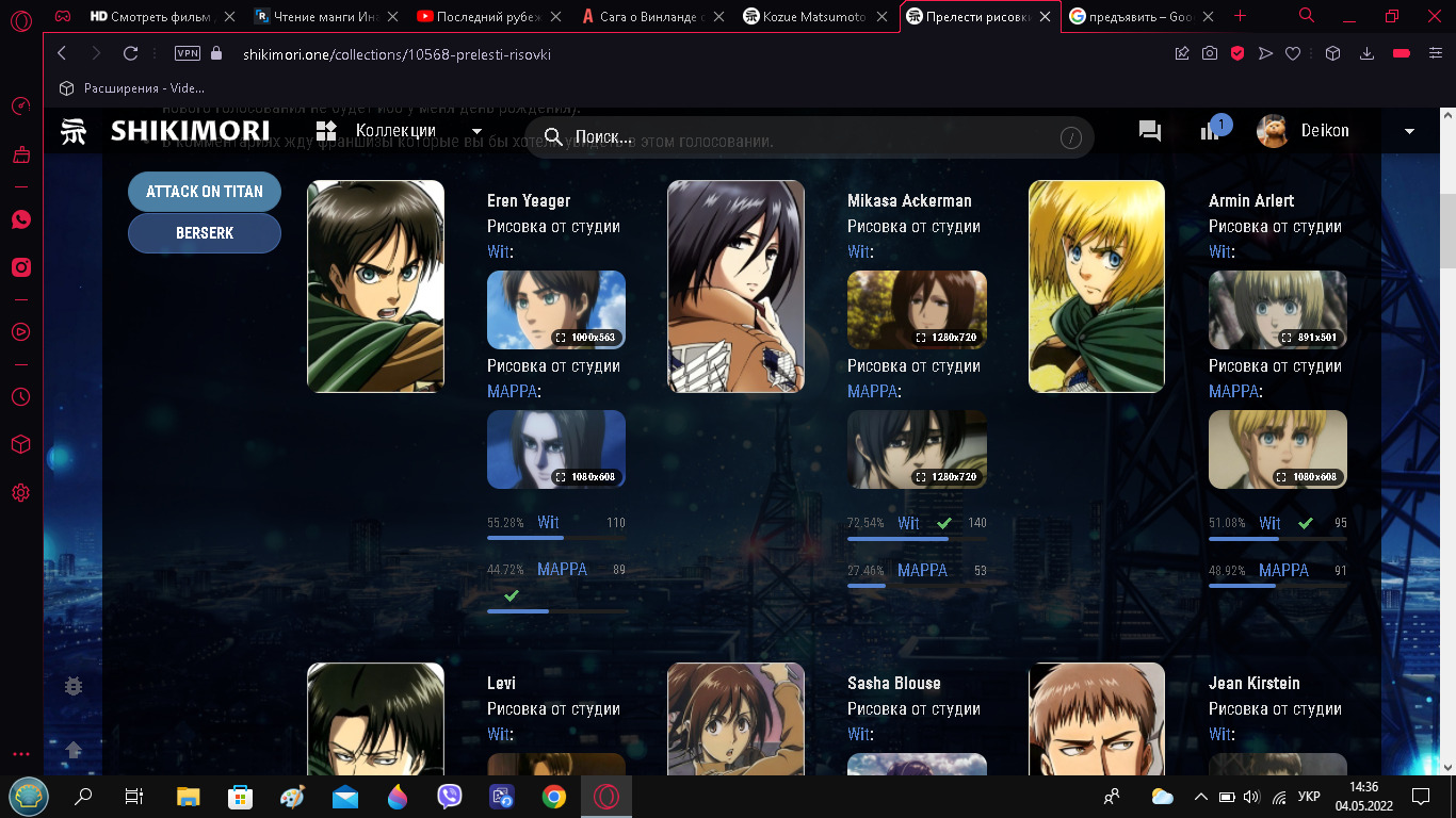 Перед тем как перейти к объяснениям хочу поблагодарить DaHank за то что показал как создать голосование (знатно я потрепал ему нервишки своими вопросами).Почему я решил создать это голосование? Потому что мне очень интересно узнать мнение других людей по поводе рисовки. Что и как будет происходить:В голосовании будут аниме рисовка которых от разных студий. Ваша задача проголосовать за рисовку той студии которая вам больше симпатизирует. Будут включены рисовки как и альтернативных историй, так и прямое продолжение. Каждый день новая франшиза. Даты начала голосования будет в комментариях под каждым из тайтлов. В голосование включены главные герои (обязательно), и некоторые второстепенные герои которые неплохо изменились из-за рисовки.Всего будет 20 тайтлов персонажи которых будут участвовать в голосовании, что-бы сильно не затягивать голосование, каждый день будет по два тайтла (05.05 нового голосования не будет ибо у меня день рождения).В комментариях жду франшизы которые вы бы хотели увидеть в этом голосовании.Атака титанов