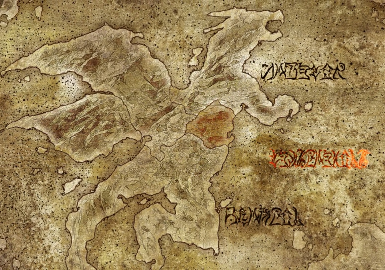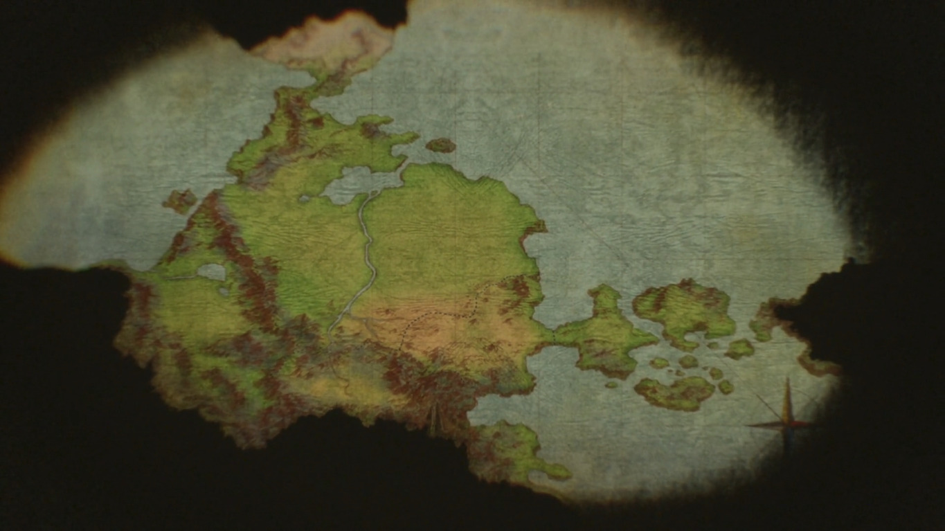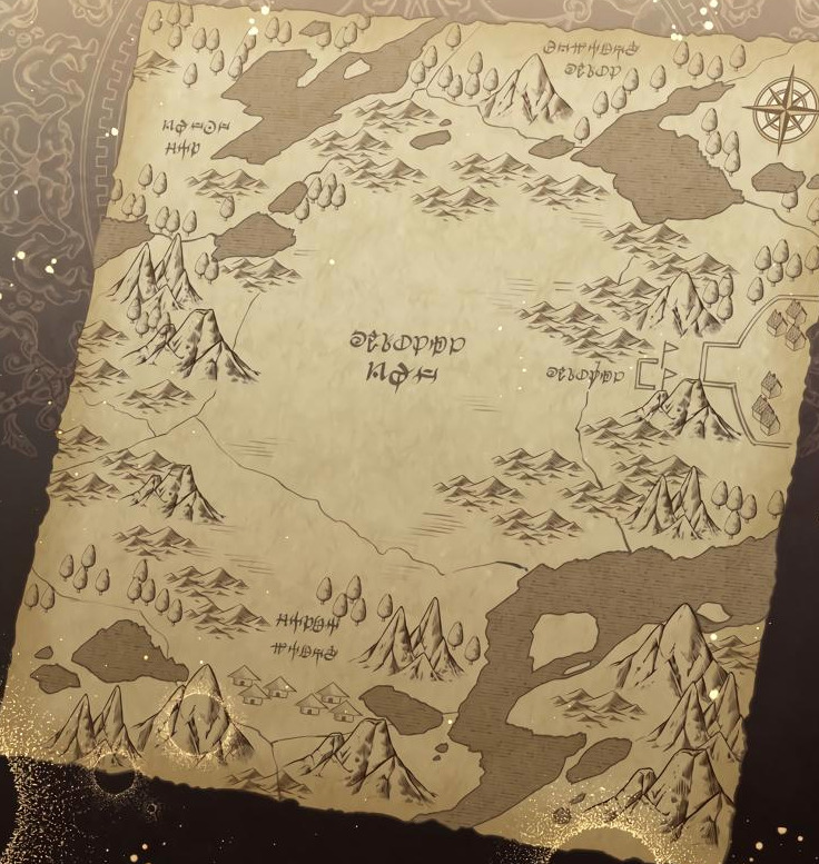 центр это ничейные земли, земли чудищ. на юге племена аборигенов, из верхних трёх одно королевство и две империи, таткическая ли это карта региона или стратегическая всего материка точно не понял, возможно просто тактическая