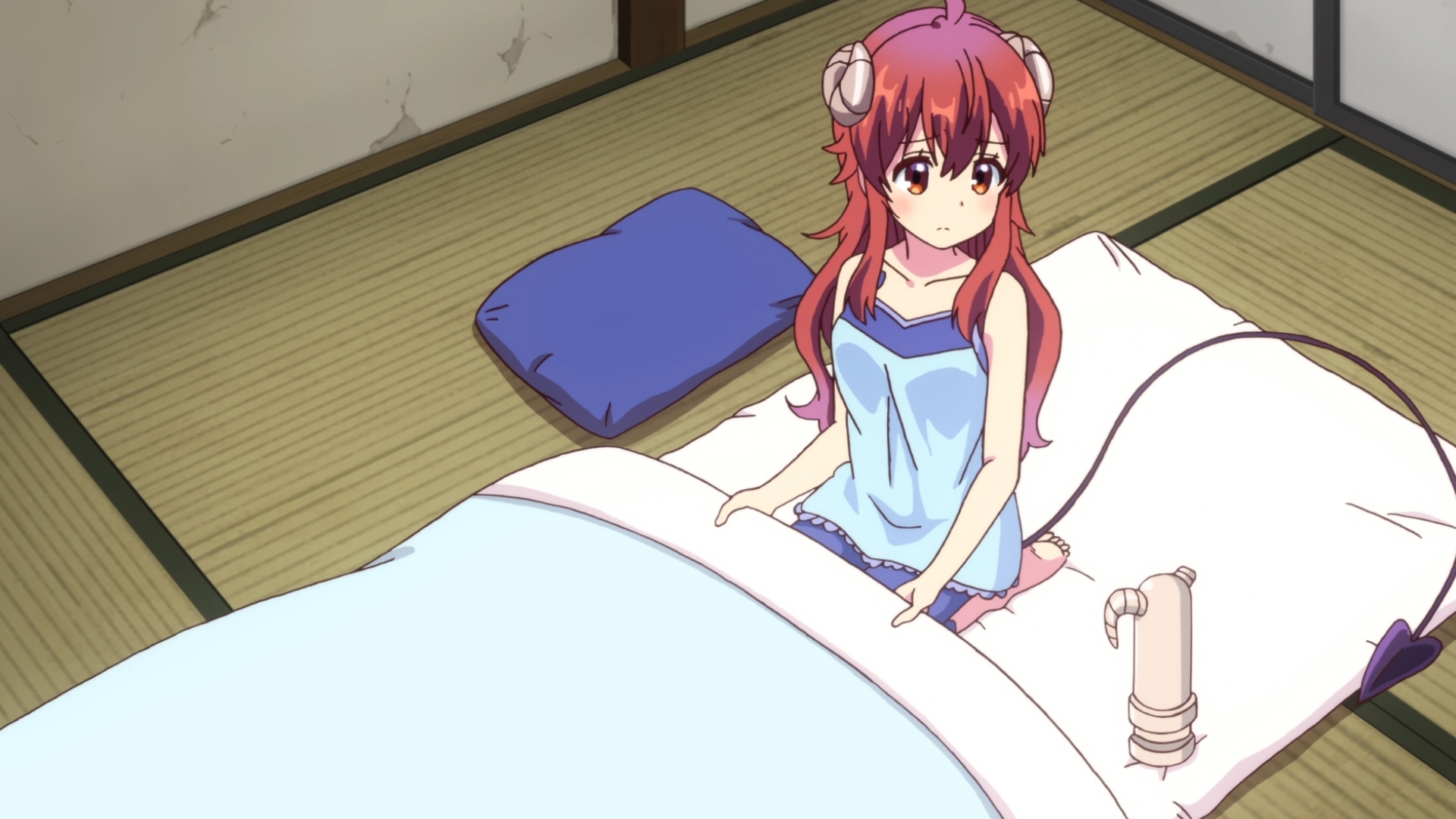 Yuuko YoshidaЮко Ёсида (Machikado MazokuГородская дьяволица, эп.11 шарахается в этой ночнушке до 06:06, и немного во второй половине серии)
