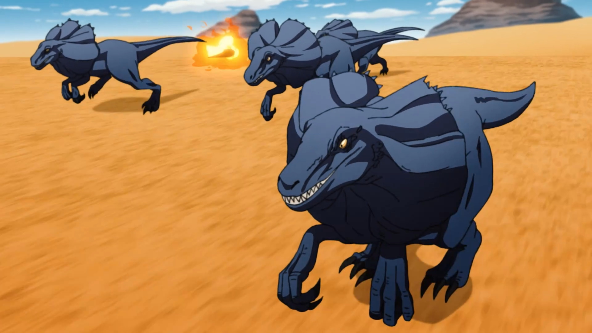 @Vasil_isk@Vasil_isk,1. Реинкарнация безработного: История о приключениях в другом мире 2. Часть 2. 11 серия этой части (23 серия 2 сезона в целом). Таймкод 10:15. Монстры похожие на велоцерапторов