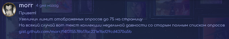 @[comment=10474601]@YantAya (p‿o)@Apc, А что там произошло? Типа теперь есть ограничение на количество опросов, которое равно 30?Их и сейчас можно редактировать