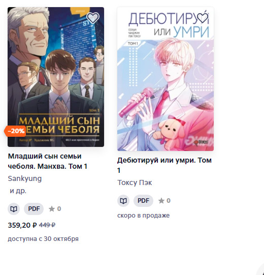 - Младший сын семьи чеболя – предзаказ 1 тома, доступно с 30.10.2024 (Литрес)