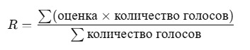 @Hikikomori_Sempai@SmokyWerewolf, 2000, но тут не все фильмы которые прошли по мин голосу. я взял только те что попали в топ 500@Hikikomori_Sempai, приведи пример расчета для любого из представленных фильмов@Hikikomori_Sempai@gamereugene1, результаты считаются не каждый отдельно, не в ручную же 2600 тайтлов высчитывать.но в целом это выглядит примерно так. Для примера возмем Унесенные призраками: