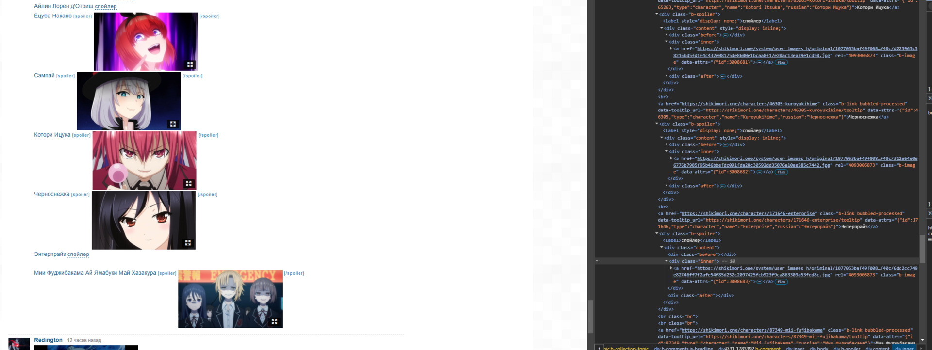 @grimik@Redington, ну вид у неё такой, словно она наслаждается своим коварным планом@ityprineympl,@Edowado, было бы[code], чтобы не нужно было каждую из них копировать отдельно...бтв Химэ слишком хороша, чтобы не выставить все её Smug'и (каждый раз когда её вижу, рука тянется запустить аниме). ну а Саечка у меня много лет фоном браузера стоит