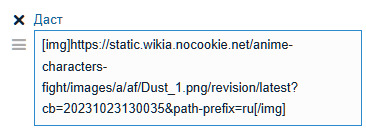 @ShelterK,ну человек выше написал, просто в поле где ты писал имена вкидываешь ссылку на картинку по правилам чата или айди картинки если оно уже есть на сайте