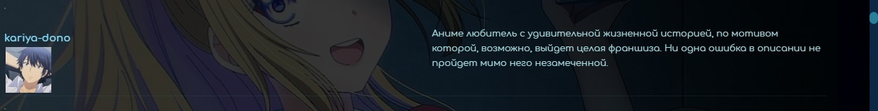 Многие из вас наверняка встречали этих замечательных людей на Шикимори и на личном опыте удостоверились, что они лучшие. Коллекция должна была включать 10194 пользователя, что всего немногим больше 1% зарегистрированных юзеров, но в результате действий анти-спама получилось только 5095, поэтому, если кто-то сюда не попал - не расстраивайтесь, напишите об этом в комментариях - и Вас, возможно, добавят. Если же Вы нашли себя в коллекции, то можете не сомневаться: Вы - лучший(ая)!Часть 1 Часть 3 Часть 4 Часть 5XakbinИстинный самурай, умрет ради чести, и, вдохновленная его героическим поступком, тима затащит.Сергей РемнёвОлдфаг в душе, думает, что родился не в ту эпоху.KaliumСидит на фандоме.ApathyМанга и аниме для нее - как смысл жизни, но она не забывает и о реале.PedrachjOВся жизнь впереди, но он, скорее всего, потратит ее на аниме.mixzhdanoffЭтот пользователь может и писал бы сценарии, да нет времени. Но скоро будет.Я буду твоей мамойСтанет крутым дизайнером, если будет уделять рисованию столько же времени, сколько аниме и манге.Forgot My NameИстинная оценка для него всегда в душе и он не спешит делиться ей с общественностью.willdiesomedayТяжелый выбор следующего тайтла для просмотра не является проблемой.EskaИстинный самурай, умрет ради чести, и, вдохновленная его героическим поступком, тима затащит. Смотрит хентай.JambitОлдфаг в душе, думает, что родился не в ту эпоху.slimataМузыка для аниме многое потеряет, если он не возьмется за гитару.dddooggМанга и аниме для него - как смысл жизни, но он не забывает и о реале.DorobBorobЧеловек с неординарным вкусом, не боящийся открывать для себя новое.Федор ИвановЗнает об аниме не понаслышке.ERiNChanИстинная оценка для нее всегда в душе и она не спешит делиться ей с общественностью.DimMasikОлдфаг в душе, думает, что родился не в ту эпоху.Nana PaleyМузыка для аниме многое потеряет, если Nana Paley не возьмется за гитару.godmoderТяжелый выбор следующего тайтла для просмотра не является его проблемой.Показать ещё 1000 юзеров...Sakura AoiДевушка - настолько милая, что у нее даже есть фан-клуб._TuturuCat^_~Девушка, смотрящая аниме.DalebitЕго судьба - быть мангакой. Закрученные сюжеты и необычные персонажи ждут своего часа.kokurikoМузыка для аниме многое потеряет, если она не возьмется за гитару.reserfordСкрытный.simplepadИзучить японский для него проще простого, но он этого не делает, потому что имеет более важные дела.koksosВ koksos таится огромный потенциал, который ждет реализации. Стоит подумать о будущем.Александр БоголюбовВсе проблемы может утопить в аниме.wlad245Не разговорчив, замкнут, в общем - асоциален.VLAD*Если бы ему платили за каждый написанный им комментарий, он бы бомжевал.MyrezhaСкрытный.Akai TenРаботать в анимационной индустрии - его мечта, которая может исполниться. (Только платят там мало)minitrixxieЕще пока новичок, но с большими амбициями. Ее манера общаться может показаться на первый взгляд немного резкой, но стоит узнать ее получше - и раскроется милейшая дере-дере сторона.padparadschaЗанимается киберспортом (вероятность 80%), а поэтому больше интересуется играми, чем аниме. Попробовал на вкус правки контента.Le OnНа просмотр аниме тратит меньше времени, чем на сидение на Шики.owouwuСпециалист по части графики, но ее возможности этим далеко не ограничены.AemielКиберспортсмен (вероятность 80%), его выносливость позволяет поглощать тайтлы один за другим.姉ちゃんСкрытная.orangemanxdУм - не порок, а достоинство. Никогда не применяет 