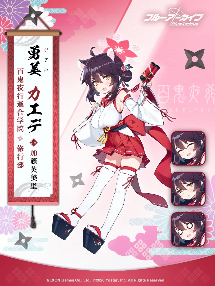 Blue Archive - многопользовательская тактическая ролевая игра для мобильных устройств(конечно же с элементами гачи). Разработана компанией NAT Games, издаётся Yostar(Япония и Китай) и Nexon(весь остальной мир). YouTube каналы игры Японский и АнглийскийГлобальная версия игры уже доступна в google play и appstore . Сайт глобальной версии.За основу взяты фанатские переводы японских названий.Спасибо редакторам фан вики и администрации фан группы в VK за перевод на английский и русский соответственно.Сейю нет на шики Takagawa Mina - Otose Kotama - Millennium Science School - Veritas - 3 год обучения. Картинкиyoutube Noro Aochi - Shiroishi Utaha - Millennium Science School - Engineering Department - 3 год обучения. Картинки Live2Dyoutube youtube Hanaiwa Kana - Sakurai Miyo - Wild Hunt Academy of Arts - Free Trade Cartel - 3 год обучения. Картинкиyoutube