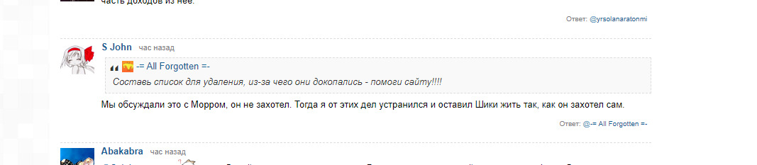 @S John, На самом деле лучше надеется на ответ админов, чем на агрессивную белку с пеной у рта , и которая не понимает сарказма. Я его даже не тегнул, о чём ты...@-= All Forgotten =-,@S John,@муррейни