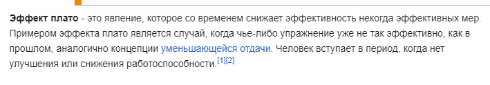 Эффект плато - это явление, когда увеличение какого-либо фактора приводит к увеличению результата только до определенного уровня, после чего дальнейшее увеличение этого фактора не приводит к значительному изменению результата. В статистике это явление может проявляться в различных контекстах. Например, представьте, что вы изучаете влияние количества часов обучения на оценки студентов. В начале увеличение количества часов обучения может значительно повысить их оценки, но после определенного количества часов (скажем, после достижения определенного уровня освоения материала) дальнейшее увеличение часов обучения может не привести к существенному увеличению оценок. Эффект плато также может проявляться в исследованиях, где анализируются влияния различных переменных на какой-либо результат. При наличии этого эффекта наблюдается насыщение влияния переменной на результат, после которого дальнейшее увеличение значения этой переменной не приводит к значительным изменениям в результате. В статистике также используется понятие "plateauing", которое означает стабилизацию данных, когда значения переменной перестают значительно изменяться и остаются примерно на одном уровне в течение определенного периода времени. Это тоже связано с эффектом плато.