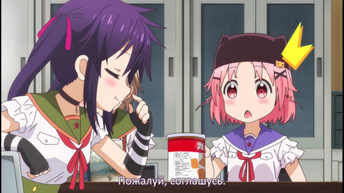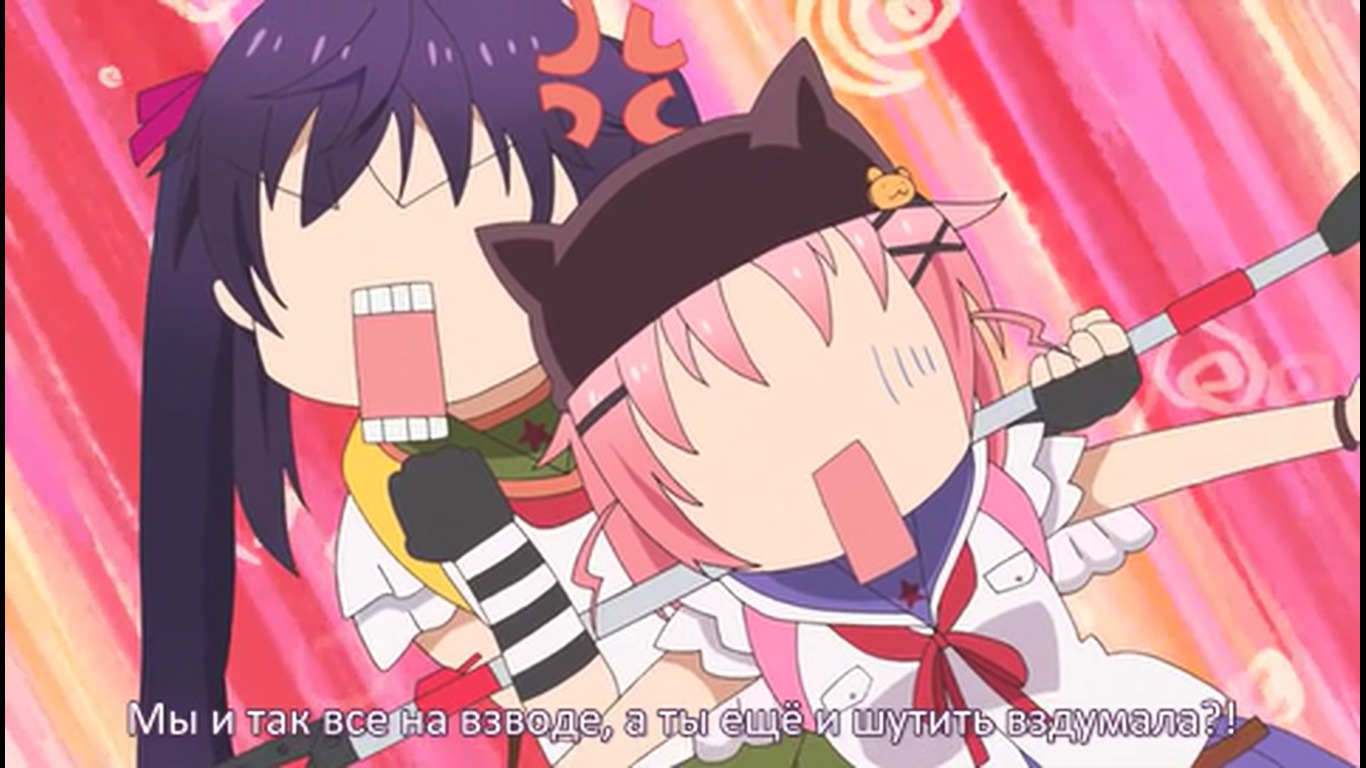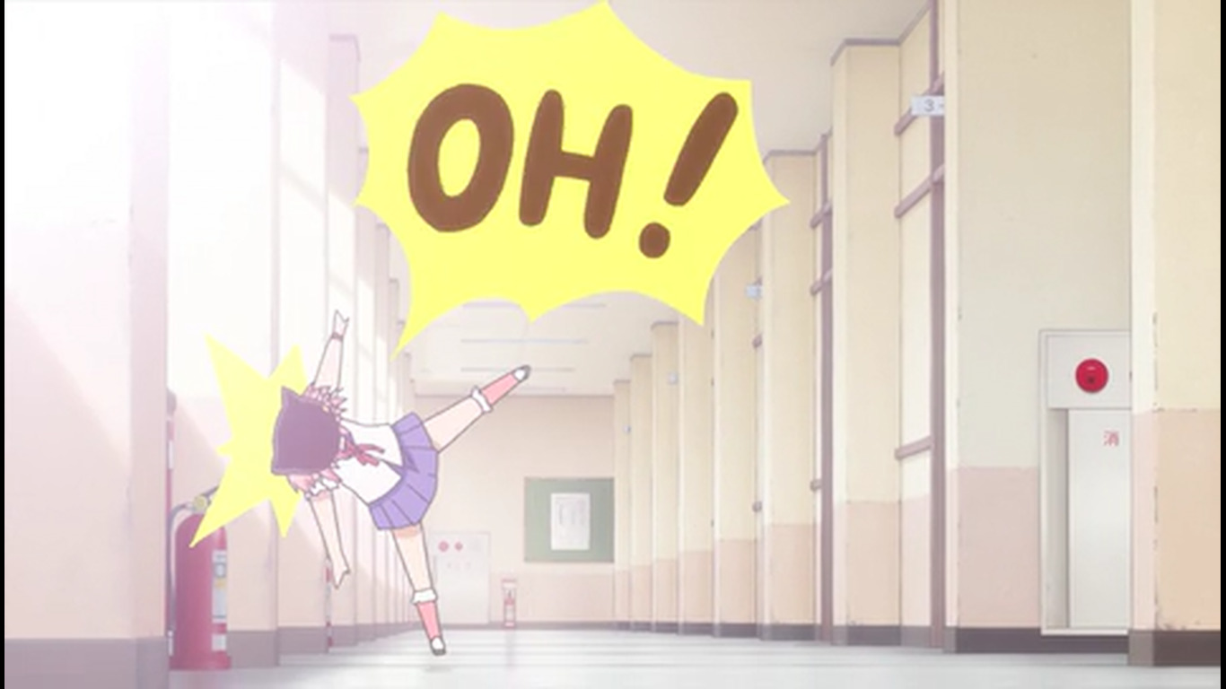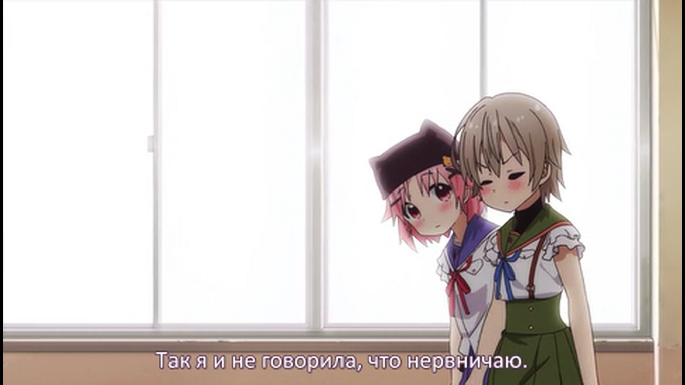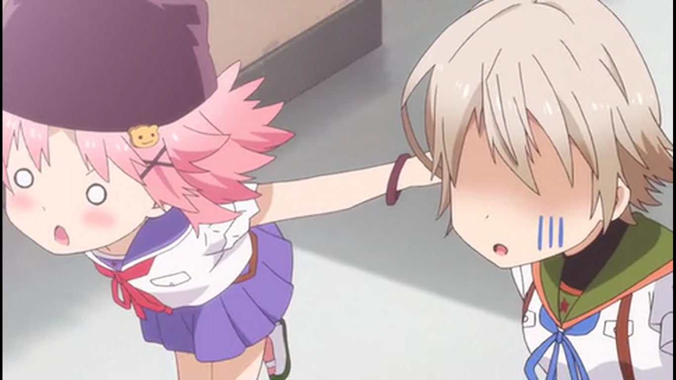 Первые 20 минут - стандартная моэ-бытовуха, со стандартными типажами, про то, как собираются на учёбу, как едят, как щебечут о всякой фигне, как гг нечаянно произносит какую-нибудь глупость, а другая моэ-баба цундерит и триггерится на это со стандартной анимацией негодования в виде дёргающегося, будто подпрыгивающего силуэта и т.д. Гг любит школу, т.к. много чего есть там и это как отдельная страна, в которой она хочет жить (и утверждает, что и другим всё это тоже нравится), но при этом раздолбайка и совсем не прилежная ученица. Беззаботная лентяйка, как она сама и описала себя. У остальных бак свистит по-своему - вместо нарочитых кривляний и ребяческого поведения - гиперчувствительная реакция на неловкие моменты, которые генерирует гг. В основном через смущение. Хотя здесь это как будто нормальное состояние девок - у них у всех щёки краснющие.