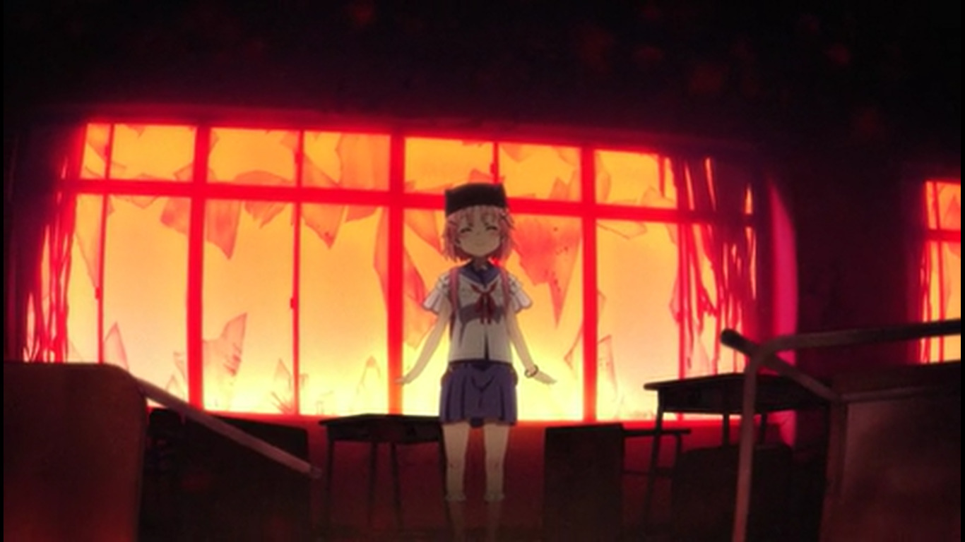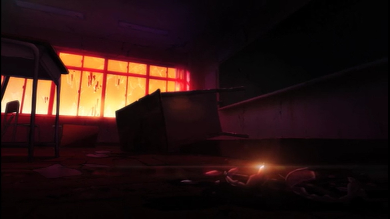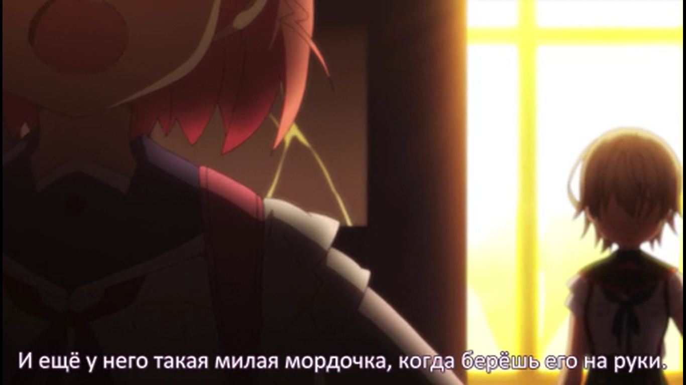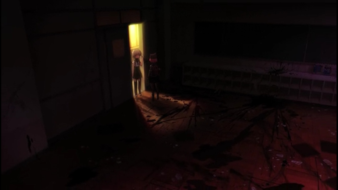 После коротенького триллер момента опять моэ тупняк. 05:42 - Они в самом деле занимаются уроками там? Одна из баб наконец сообразила, что с шизой гг надо что-то делать, а то гг чуть домой не ушла прям перед зомбарями. Другая баба упорствует, мол, разве стоит её лишать хотя бы такой счастливой жизни. "Нам можно лишь порадоваться за неё". 07:15 - Подумывают об экономии припасов т.к. галеты и электроэнергия кончаются. На крыше солнечные панели. Светленькая баба выживала одна в супермаркете. 08:02 - гг очень плохо учится - видимо, постоянный предмет для шуток такой. 08:23 - Размышляют сильно ли поразила мир эпидемия, надеются, что только их город. "Когда-нибудь нас всё равно спасут". 09:45 - Девка решила расправиться с одним блуждающим зомби лопатой, убеждала себя, что они больше не люди. Но начала колебаться, когда увидела чехол от телефона, на котором изображена влюблённая парочка. 10:03 - кинематографическая пауза во время напряжённого момента прямо перед ожидаемым действием - девочка должна была пронзить зомби лопатой. Переход на мирную сцену с гг. 10:59 - Сцена где девочка оттирает кровь от лопаты. Другие девочки говорят, что уже не первый раз она убивает зомби без необходимости вместо простого осмотра территории. "Это слишком опасно". 11:43 - Девочки предполагают, что зомби идут на звук, помнят свою прежнюю жизнь. 12:19 - Куда уж без эро фансервиса, помимо стандартной моэты: