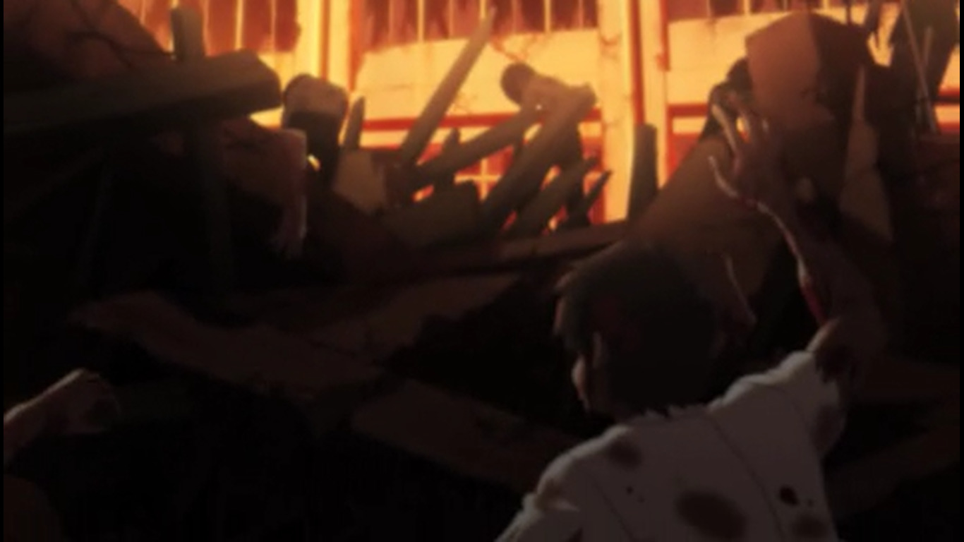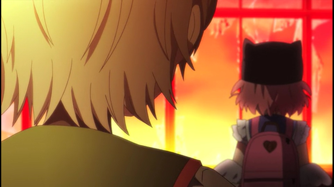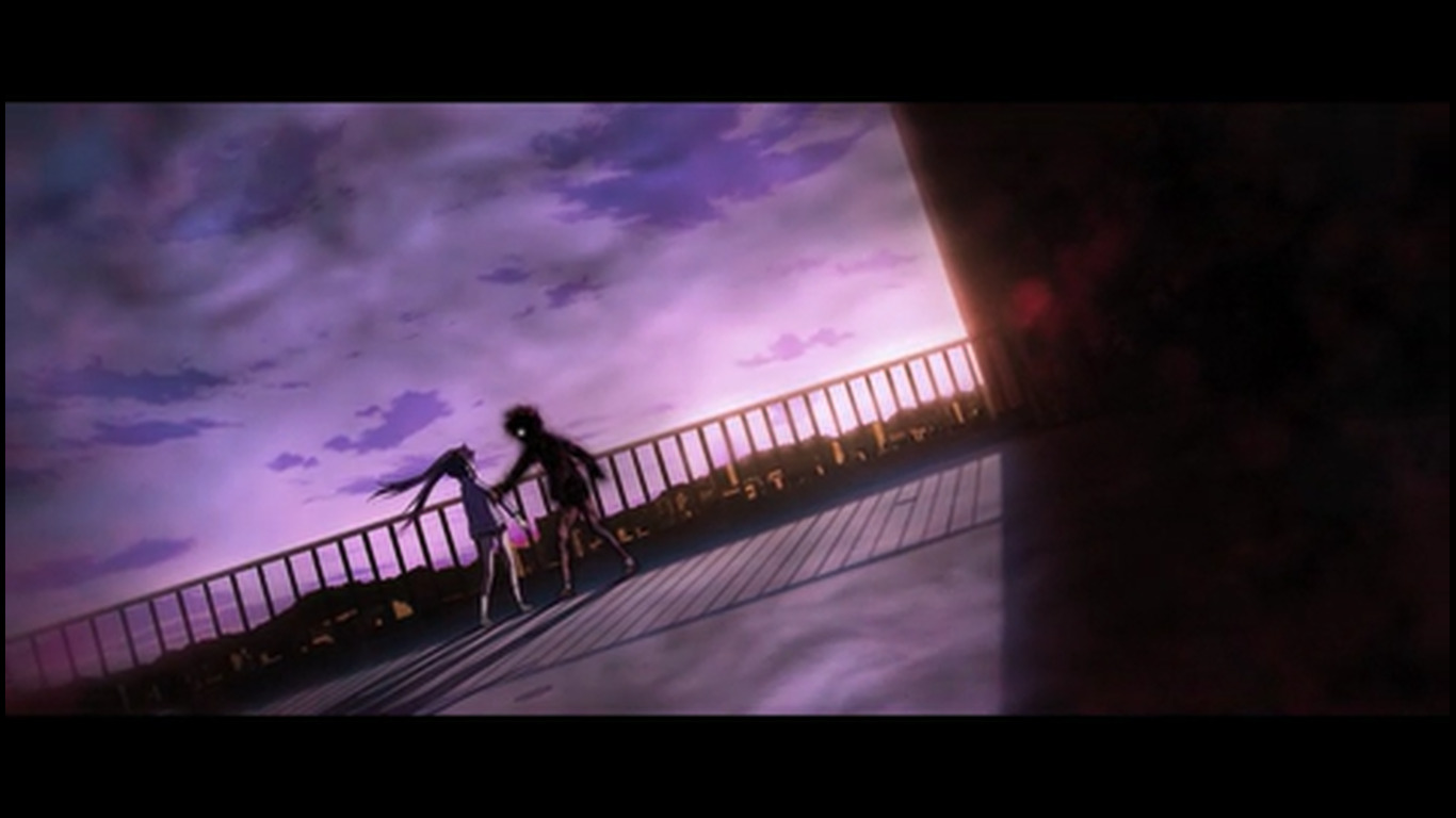 Вездесущие провода ^. Это было похоже на концовку одного фильма. Там 2 человека уезжали на машине в закат, оставив позади все ужасы прошлого. Я чувствовала себя точно также. Конец сцены, плавный переход к сцене с Мики через одинаковую музыку. Таромару, видимо, сбежал через открытое окно.
