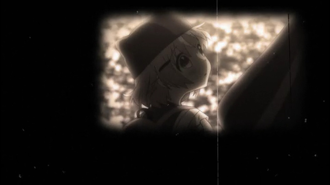 22:29 - Кинематографическая пауза - чёрный экран с обрывом звуковой дорожки. Эндинг. 23:05 - Искуственное состаривание изображения через зернистость видео, артефакты съёмки и чб. Подсветка светом контура ещё.