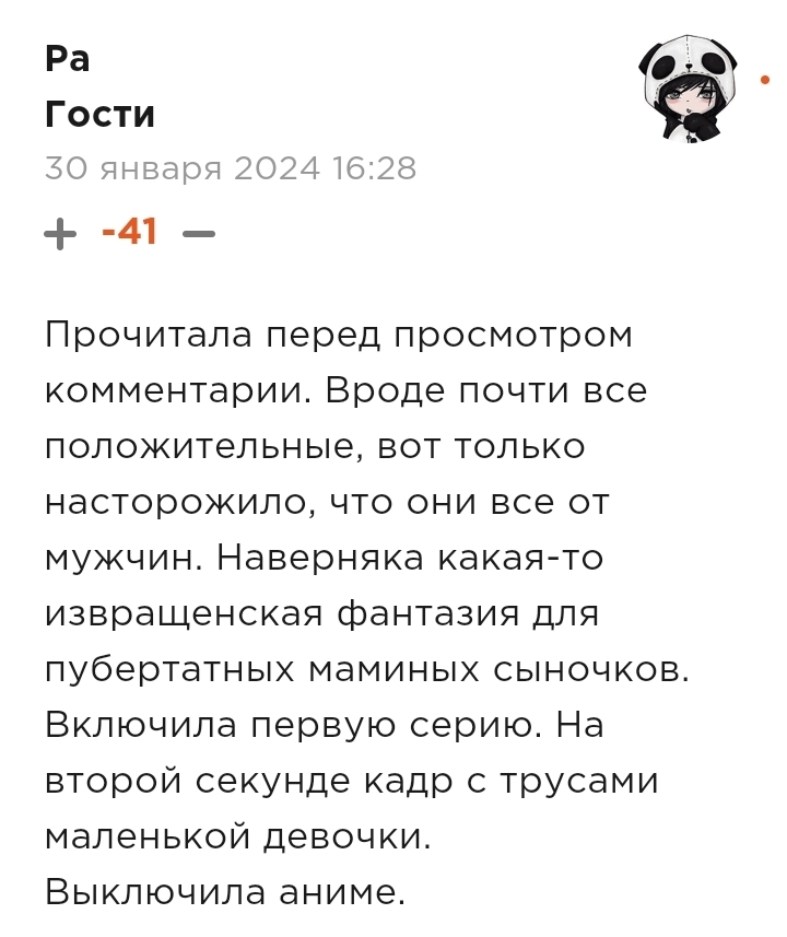 @Aлeкcaндрoвич, очередная лоботомированная малолетка, которая при просмотре фильма с родственниками или знакомыми видя кадры нижнего белья, заикаясь, начинает вопить: "К-к-а-ко-й ср-р-рам!". Если такова цена, чтобы убогие реже появлялись в топике предмета обсуждения, то вполне оправданно. Тяжело представить, как они справлятся будут в 8 классе, когда по биологии дойдут до половых признаков. Жалкое зрелище, короче говоря.