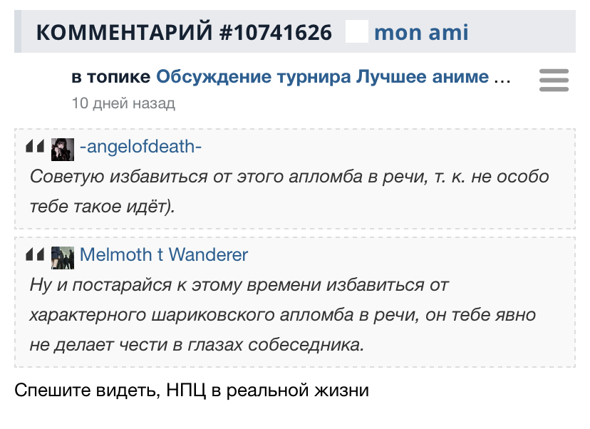 его месте я бы вообще успокоился и перестал писать на форуме после того, что произошло в топике Арлекино