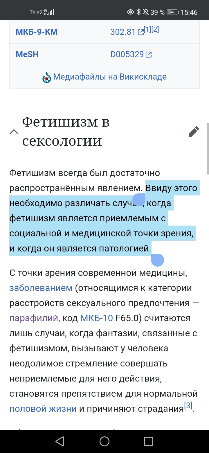 @По уши в манге, Вкусы человека в отношении того, что он предпочитает большую грудь это тоже фетиш. Предпочтения или "вкусы" людей в отношении физической красоты партнёра это тоже фетиши. Выше же определение кидал: И скину чуть ниже туже статейку с вики, чтобы прояснить разницу между социально и медецински приемлемыми и неприемлемыми фетишами: