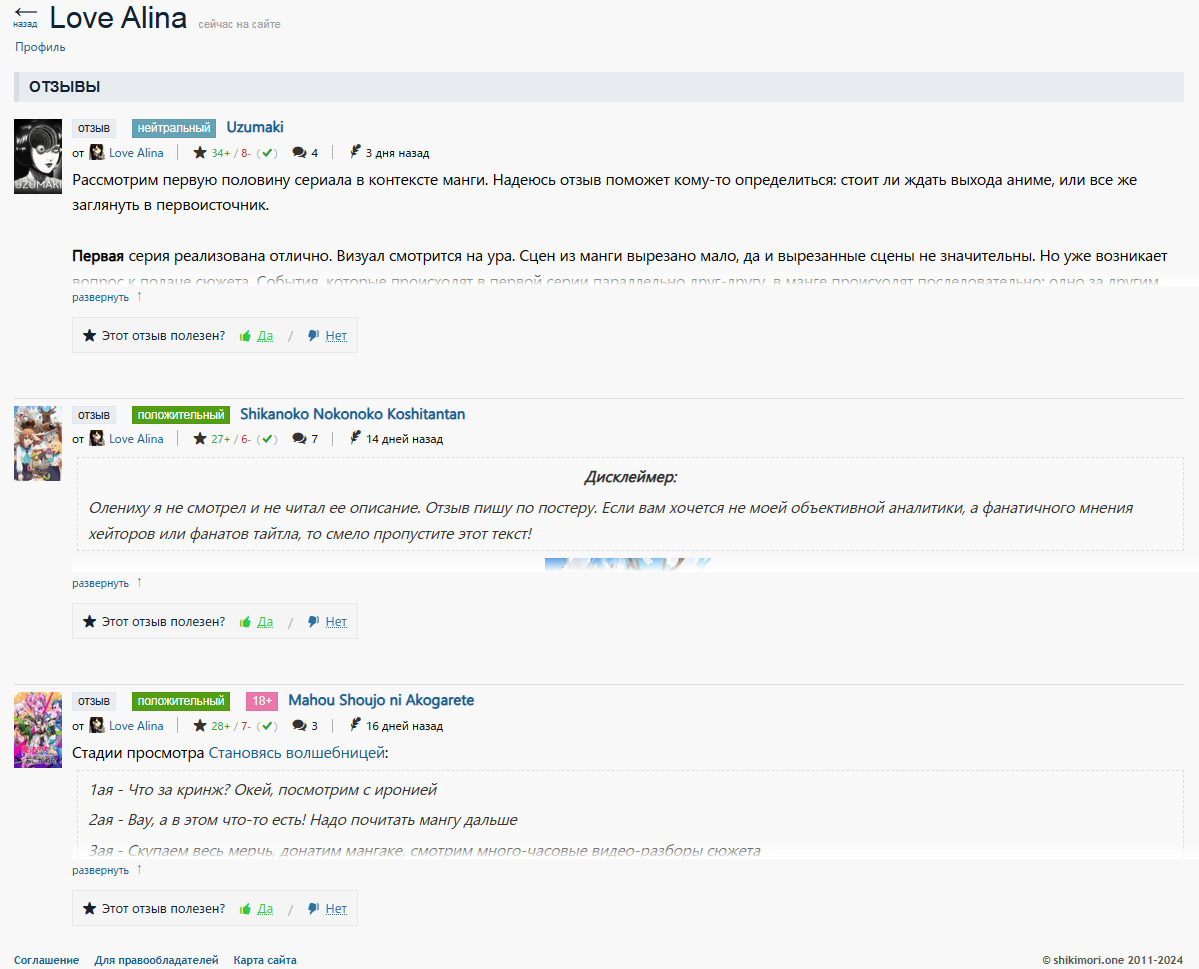 Тут соглашусь. Хотя еще зависит от промежутка времени, когда отзыв пишут. Например, часто, когда тайтл ток вышел, много положительных отзывов, и все в лайках. А когда тайтл уже остывший, то новые зеленые отзывы не набирают популярность, а вот новые красные получают свое внимание.