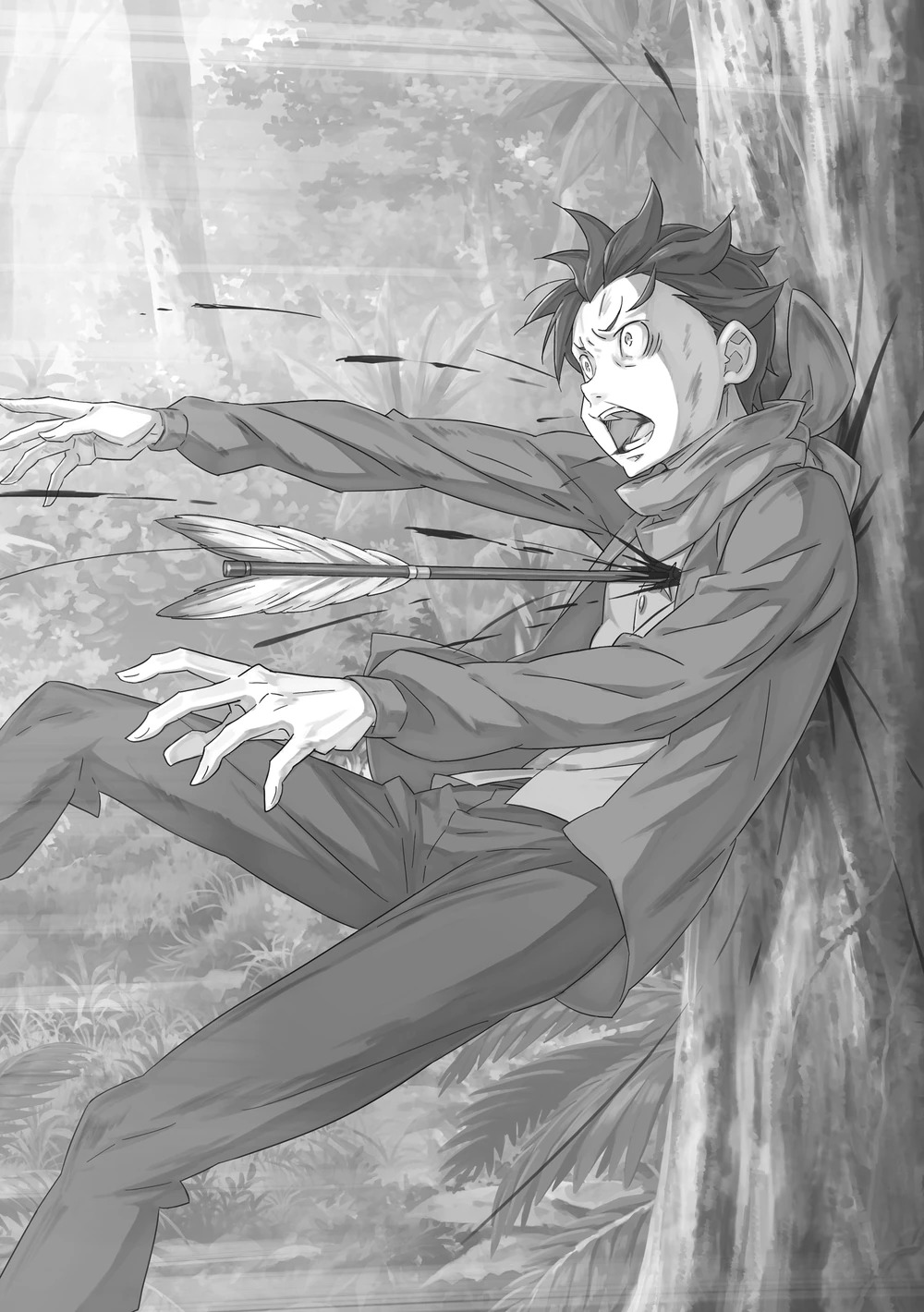 Высокий красноволосый мужчина, в дзори и небрежном кимоно, шагает твёрдой поступью по ледяной дороге. Натянув жуткую улыбку до ушей, он прошерстил в проходе между Чревоугодием и компанией Субару.