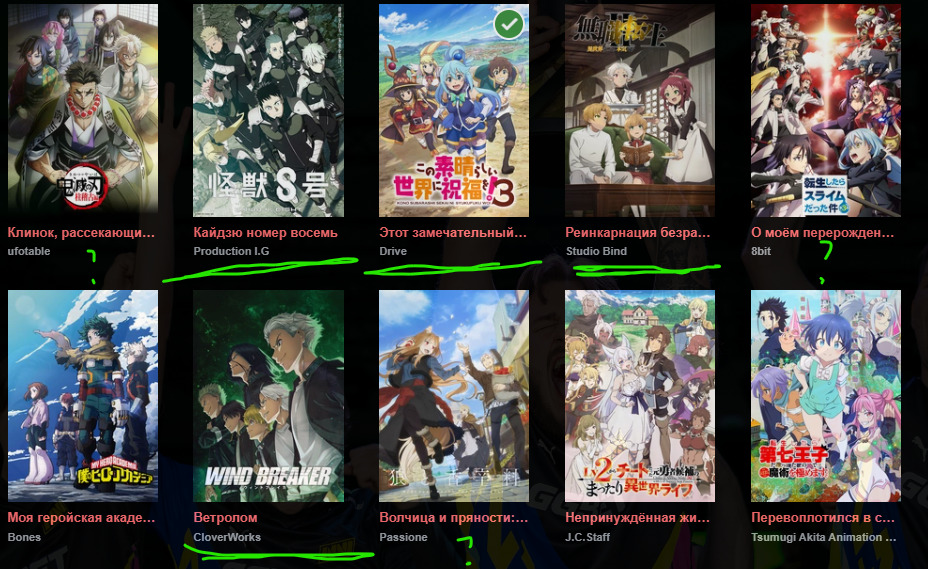 , я бы еще выделил Геройскую академию, у неё хорошие шансы на топ 5, у Клинка был слабый сезон, у Безработного +– норм, но намного хуже 1го сезона, а победителем скорее всего будет Кайдзю номер 8