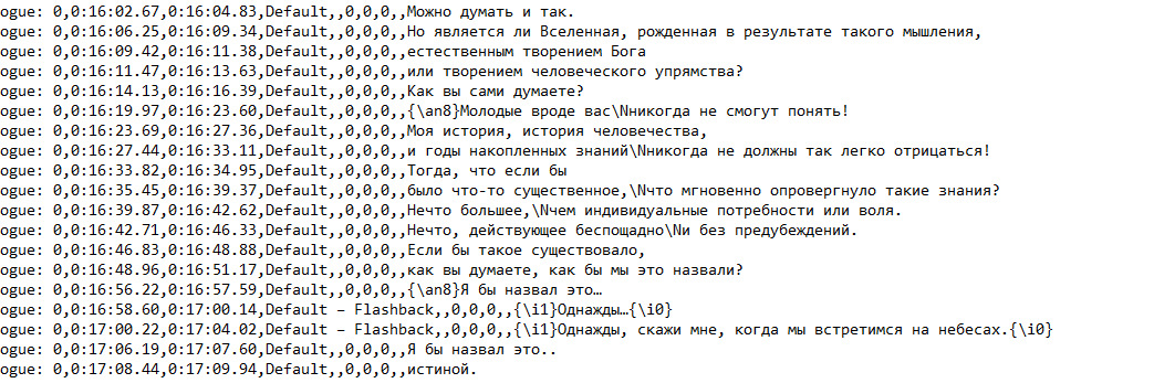 @sink, специально для тебя скачал субтитры в виде текста и почитал диалоги. . Вот скрины некоторых затяжных диалогов из разных серий, не вижу чего-то нелогичного или бесмысленного. Можешь сам почитать и выписать что тебе кажется нелогичным и бесмысленным, а иначе все что ты говоришь пустой треп. Вот сайт www.fansubs.ru/base.php?id=7248