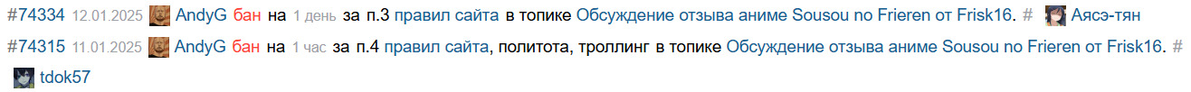 Смотри: 1-й бан на 1 час и его время определено вручную модером. 2-й бан на 24 часа и его время определено автоматически. Каждый последующий бан увеличивает его срок в 2-3 раза, то есть 1-й бан должен был быть 8-12 часов, а никак не 1 час. То есть модер его снизил собственным решением. После 1 часа Энди начал срать в комментах. Если бы ему назначили как положено 8-12 часов, этого бы не случилось. Я уже не говорю про то, что за подобные высказывания ему давно надо было выписать перманентный бан, он далеко не в первый раз такое пишет.
