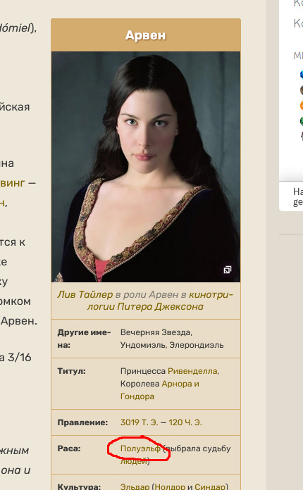 "А́рвен Ундо́миэль (синд. Arwen Undómiel) — персонаж эпоса «Властелин колец» Джона Р. Р. Толкина, дочь Элронда и Келебриан" она чистый эльф