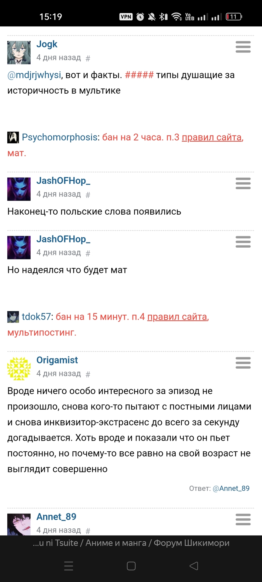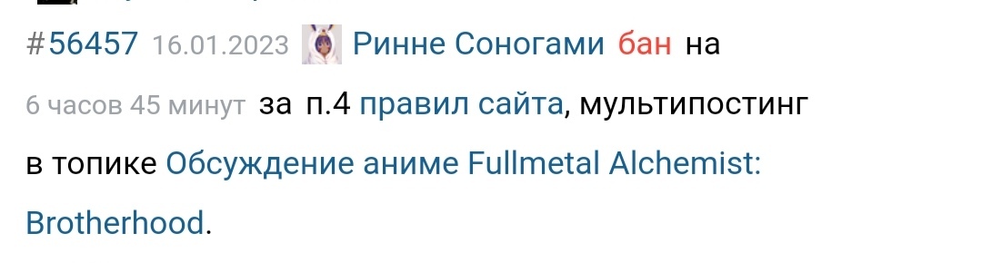 @Ринне Соногами, слушай, я ж человек не ленивый, поэтому я залез в твои в баны и посмотрел все баны за мультипост за последние три года. И знаешь, что выяснилось? А выяснилось, что ты, похоже, вруша, потому что за последние три года у тебя нет ни одного бана ни за какой дубль (нет, конечно остается еще 21-й год, но там баны в гигантском топике на семь тыщ комментов, их хрен раскопаешь). Более того, выяснилось, что баны за мультипост, которые ты получал, давались тебе за три поста подряд, то есть случайностью это не могло быть ну вообще никак. И еще более того, выяснилось, что мультипостинг ты практикуешь на регулярной основе, не пользуясь редактором постов, судя по всему, из принципа.