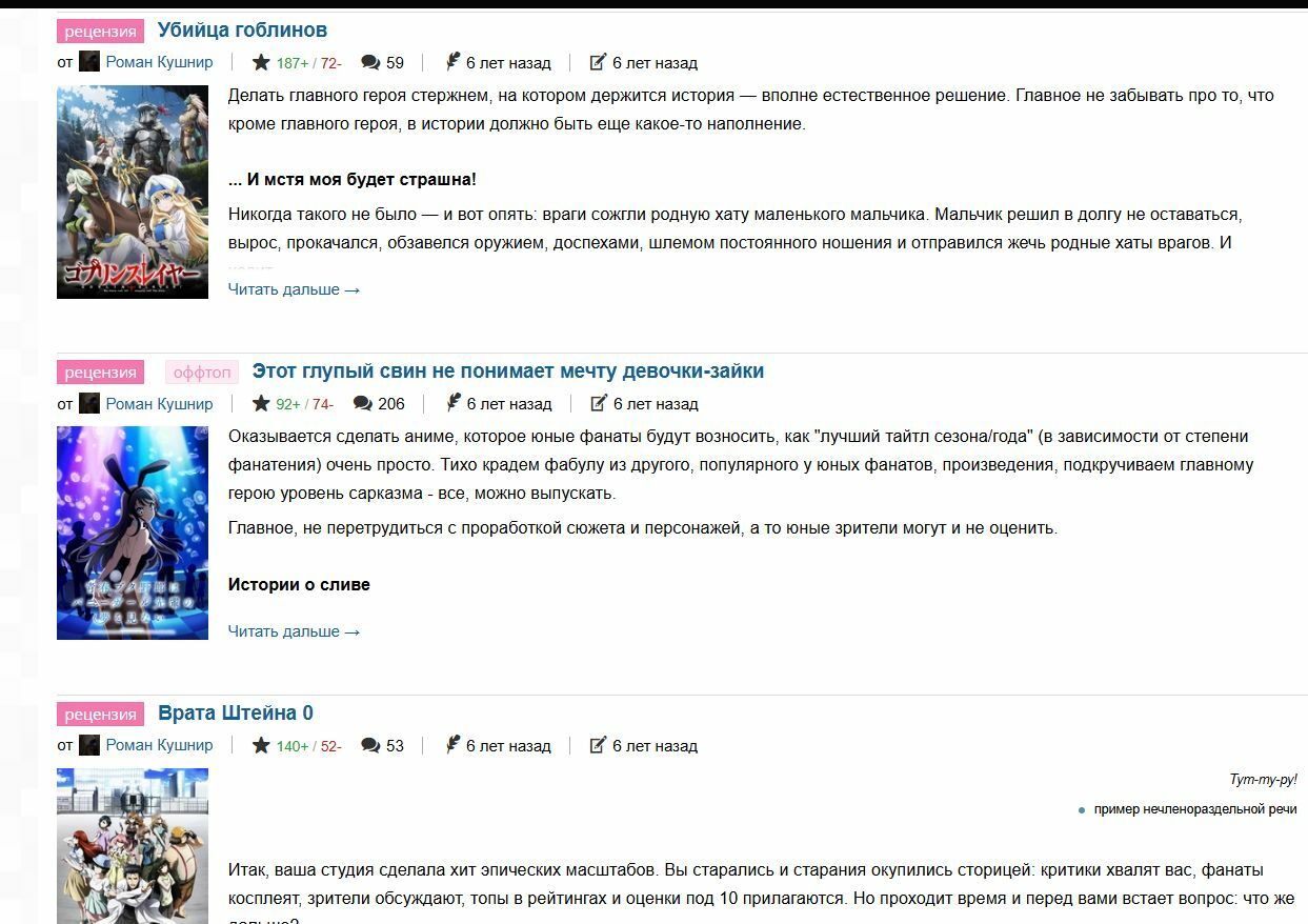 @soleami, не говорил. Более того, я даже поделюсь с тобой одним секретом: я не пересматриваю аниме вообще. Единственное исключение — Унесенные призраками и то только потому, что смотрел его впервые в совсем уж дремучие времена по ТВ, даже не помню целиком ли. Хотя, ты можешь попробовать найти, где я такое говорил у меня в комментах, благо по ним поиск есть, и вывести меня на чистую воду. Сдуть, так сказать, надутого индюка.