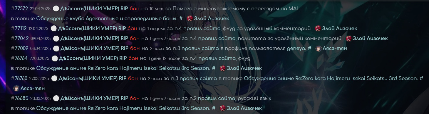 @Кот-бегемот, Смотри историю банов.@Remanga enjoyer, Реально. Не понимаю почему кот его защищает, он вел себя как неадекват постоянно. Забанили его - ДИКТАТУРА, жесть.@Кот-бегемот