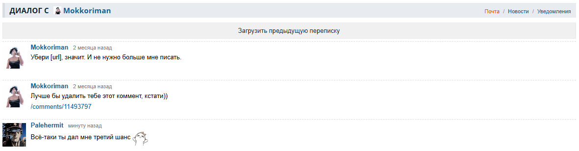 @Mokkoriman, И заодно снял с меня игнор, всё-таки третий шанс ты дал, а говорил, что не будешь) @illusory whisper, А ты был прав про цундере Дружба - это чудо и ты это замечательно знаешь, мы навеки вечные закадычные друзья Вот такая у нас дружба с Моккориманом, противоположности притягиваются