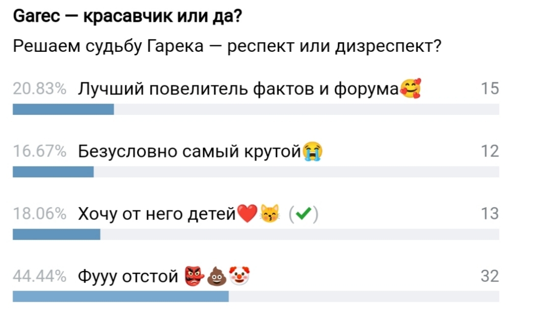 40 > 32. Итоги. Гарек — красавчик! Так считает большинство.