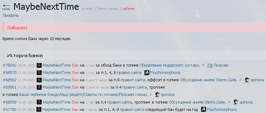 Год это тоже приговор. Через год человек уже излечится от аниме и шикимори, заведет семью, работу норм найдет. И не вернется. Вообще на больше недели это уже суровый бан, на такие длинные вердикты, считаю, должны проходить судейские заседания с присяжными. 😁