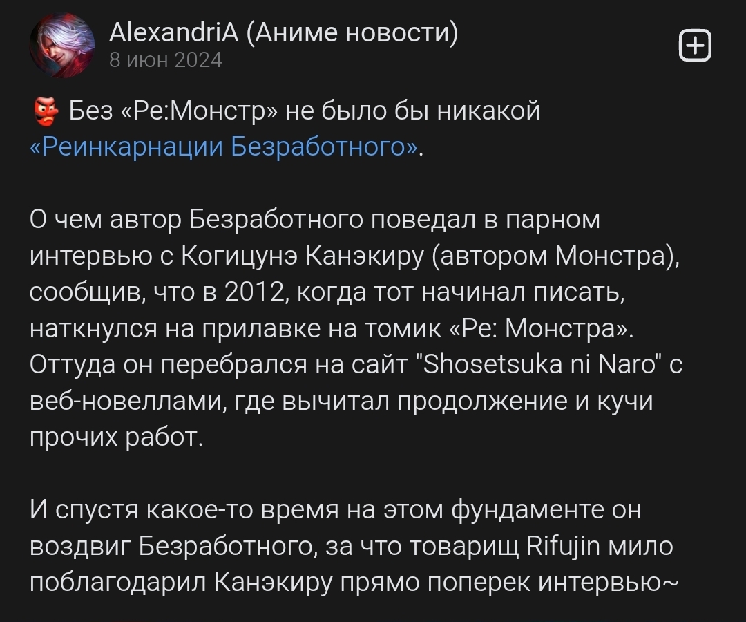 Ну дак тут прямо написано, что он просто перебрался на платформу, где писал автор ре монстра. Ты написал, что автор РБ понатырил идеи у других исекаев, какие конкретно идеи и у кого он стырил). Мне реально интересно. Ре монстр и РБ похожи только в том, что это фэнтези...). Там разное почти всё, начиная, от внешности и характера ГГ, заканчивая миром, лором и сюжетом...