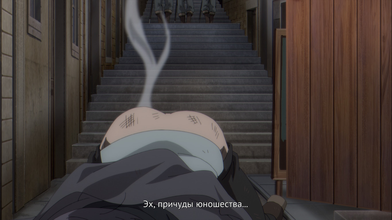 , он стоит раком, с голой дымящейся жопой, 1 их нападавших застёгивает ремень на штанах....